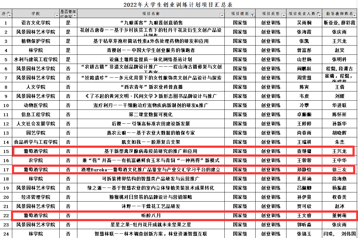 文化推广品鉴室与产业交汇学习平台的建立”“听醉八月”3个项目被确定为创业训练国家级项目,国家级立项数获历史新高,位居全校前列。