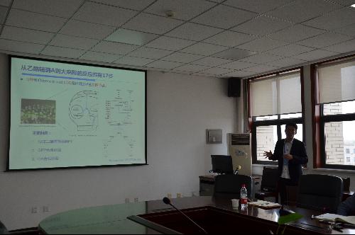 学术报告由院长房玉林主持,部分教师和研究生参加了活动。江南大学张云丰博士做了题为“胰蛋白酶的定向改造及大麻酸的生物合成研究”的报告,详细介绍了基于自活化策略的灰色链霉菌胰蛋白酶的分子改造,及其在毕赤酵母中的高效表达。张云丰博士同时汇报了其在加州大学伯克利分校联合培养期间所做的“代谢工程改造酿酒酵母从头合成大麻酸THCA和CBDA”研究的相关内容。
