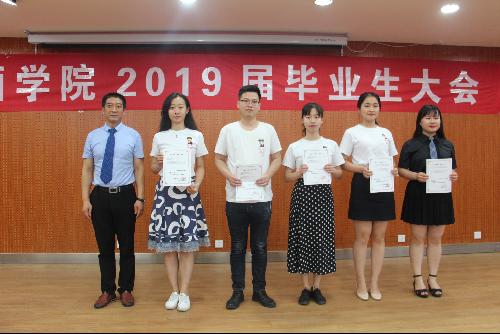 2019届优秀毕业生、志愿服务边疆建设优秀毕业生颁发证书,党委书记胡俊鹏为全国高校“百名研究生党员标兵”、校级“十佳毕业生”、校级“优秀毕业生”颁发证书,房玉林院长为优秀本科毕业论文指导教师颁发院长基金奖励证书及奖金,李华教授为获奖学生颁发李华科研创新奖学金证书证书及奖金。
