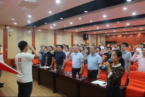 党委副书记邓亚丽的带领下,全体师生党员面向党旗庄严宣誓,预备党员入党宣誓,正式党员重温入党誓词,进一步激发了师生党员为共产主义事业