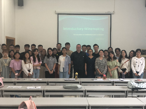 酿造的微生物学基础及发酵原理,教授了酵母菌的特性、硫代谢、氮代谢、酒精发酵及其副产物,他同时结合小容器苹果酒发酵比较了3株非酿酒酵母与酿酒酵母的发酵特性,加深了同学们对酵母参与的酒精发酵的理解。Jeffery副教授则着重从工艺学角度介绍了美女直播