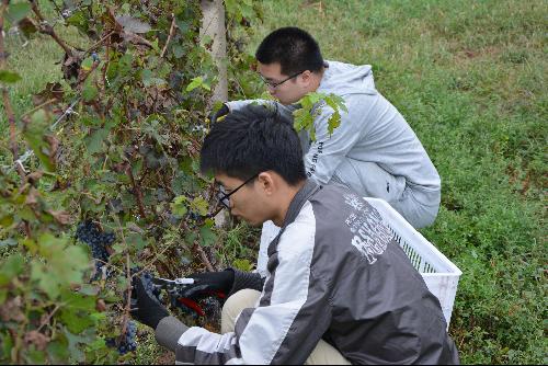 2016级本科生到站实习。这13名同学将在示范站进行为期二十天的顶岗实习。为了使同学们更加充分地掌握葡萄从采收到入罐再到餐桌的全部过程,取得良好的实习效果,示范站从工作安排到后勤保障各方面都做了充足的准备。