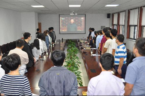 教职工以及学生干部、党员代表集中观看了庆典盛况,广大师生还通过网络自发积极观看大会直播。第一时间收看大会的美女直播
